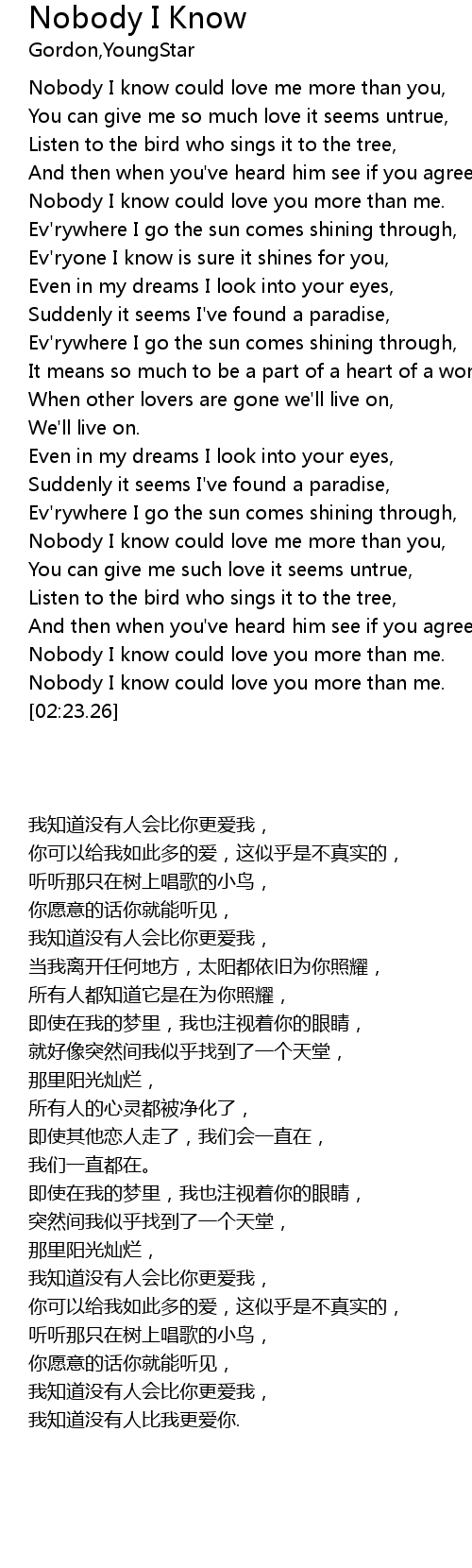 Nobody I know could love you more than me. |