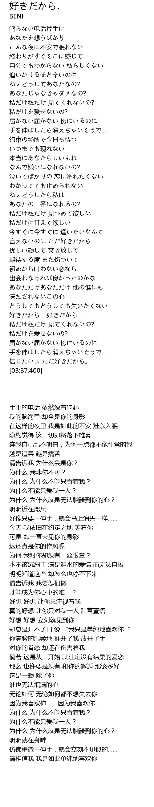 | [03:30.120] | 信じたいよ ただ好きだから。 |