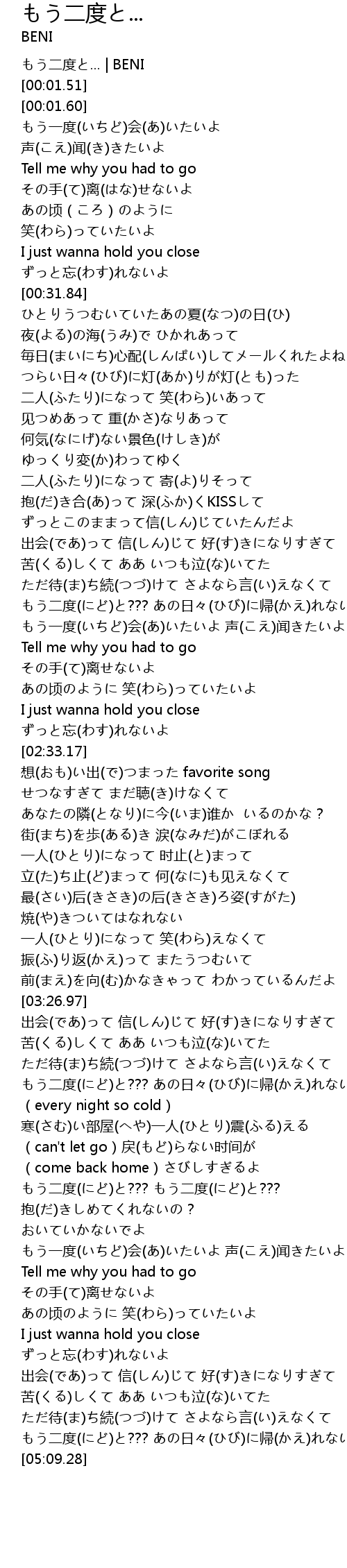 | [04:09.16] | もう二度(にど)と??? もう二度(にど)と??? |