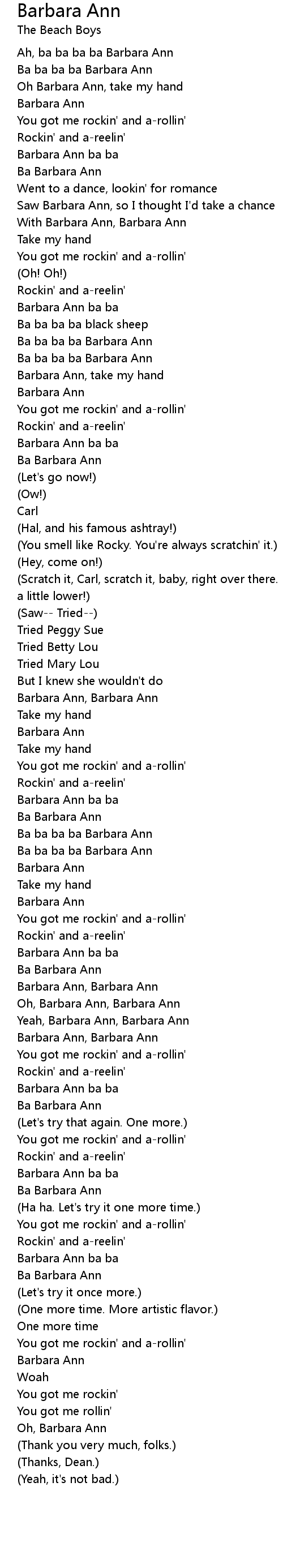 Barbara Ann ba ba |