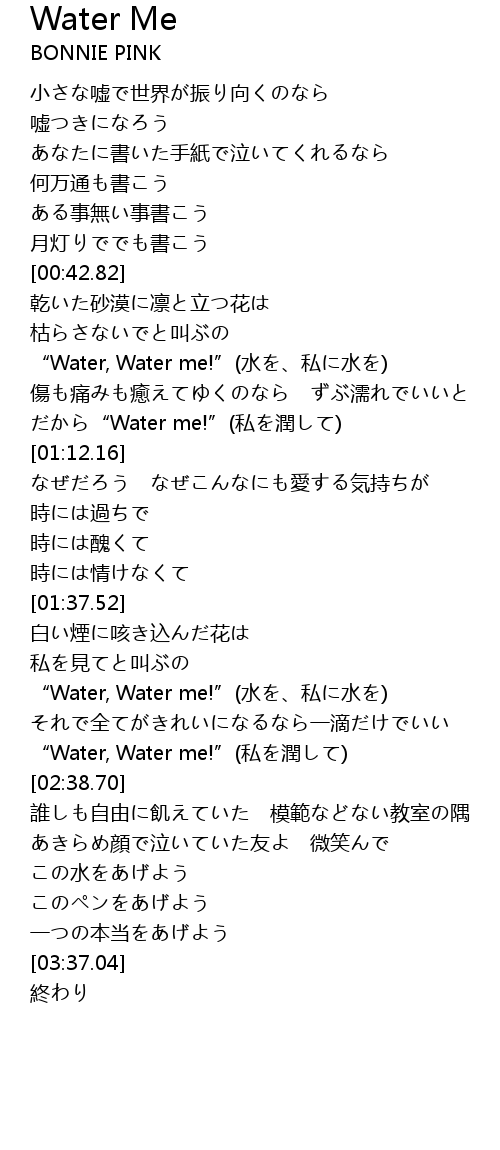 | [00:54.40] | “Water, Water me!”(水を、私に水を) |