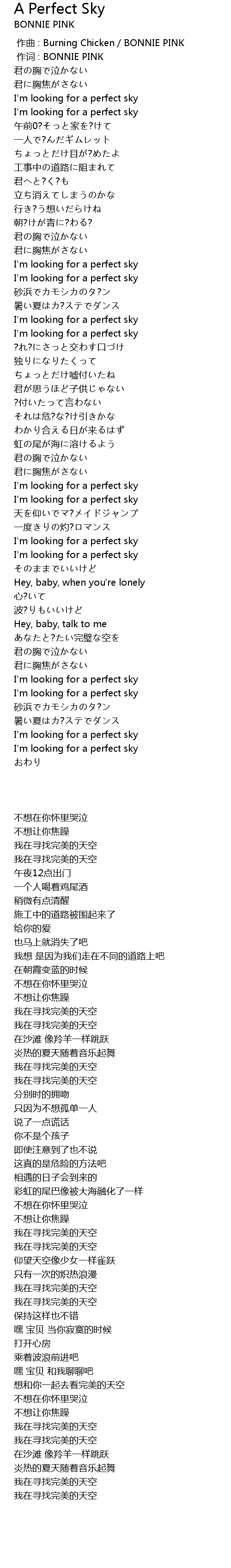 | [00:09.19] | I' m looking for a perfect sky |