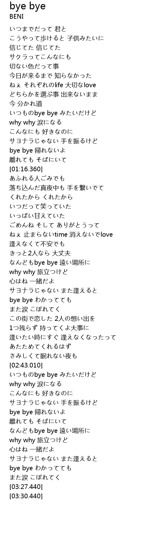 | [02:44.650] | いつものbye bye みたいだけど |