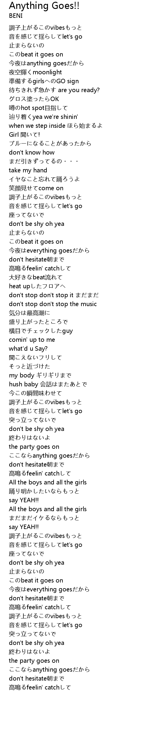 | 歌曲 | Anything Goes!! |