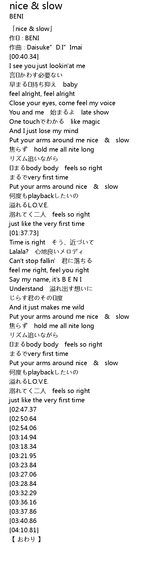 | [03:42.83][03:14.94] | Put your arms around me nice & slow |