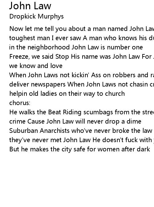 Now let me tell you about a man named John Law He's a neighborhood cop the toughest man I ever saw A man who knows his duty, a man with a gun To the people in the neighborhood John Law is number one |