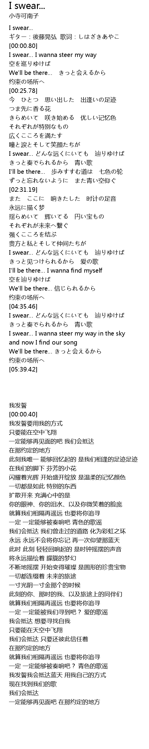 | [01:41.01] | I swear… どんな远くにいても 辿りゆけば |
