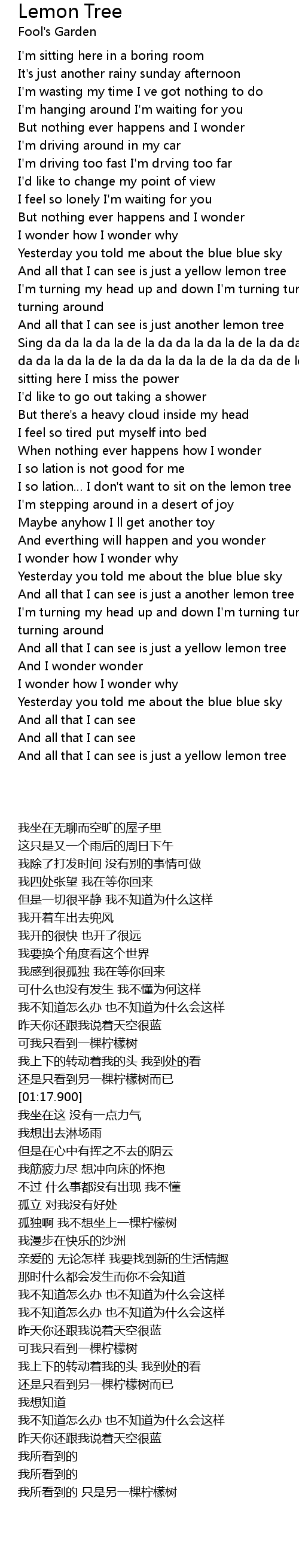 | [02:28.450] | 可我只看到一棵柠檬树 |