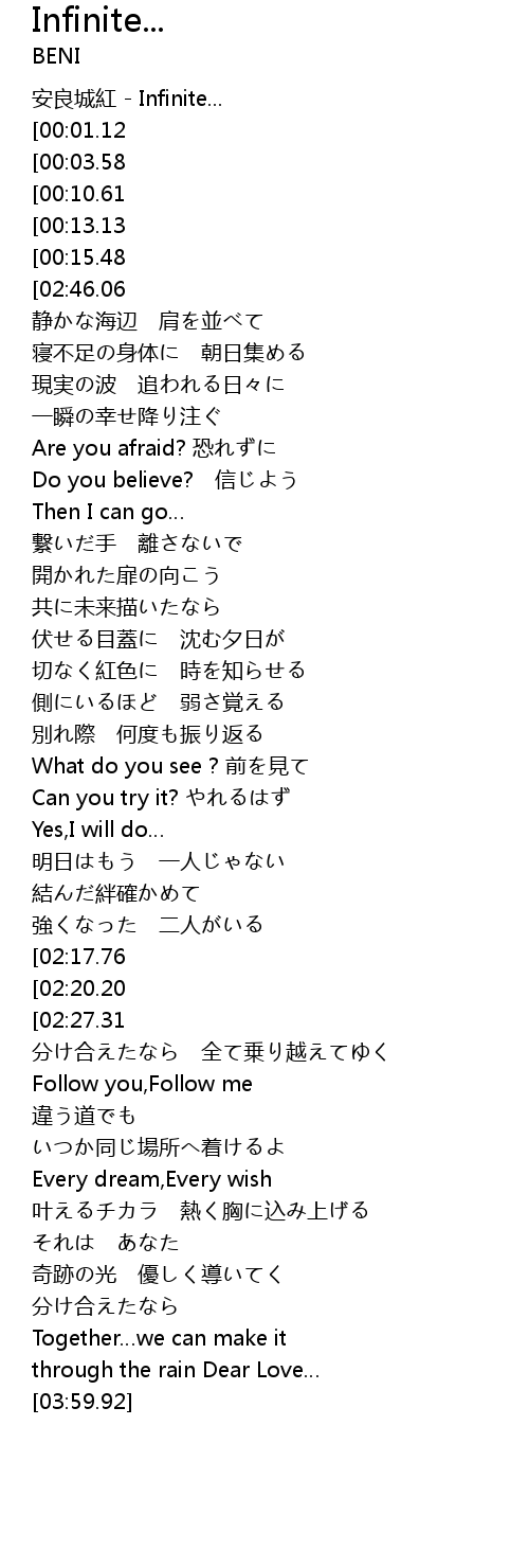 | [00:00.82] | 安良城紅 - Infinite... |