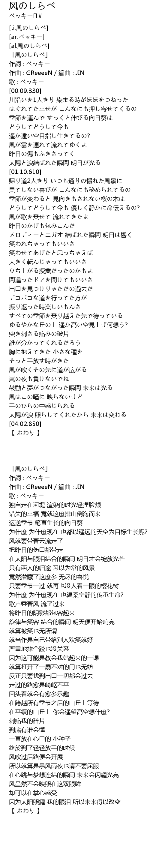 | [ti:風のしらべ] | |