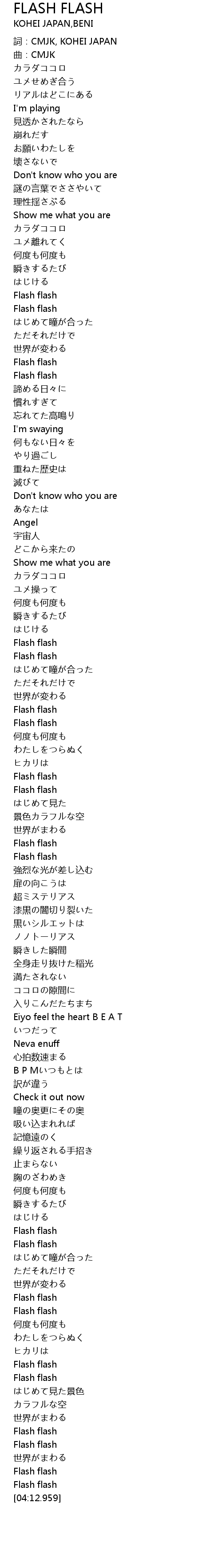 | [00:02.820] | 詞:CMJK, KOHEI JAPAN |