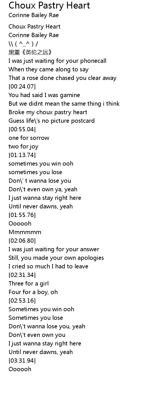 | [00:39.34] | Broke my choux pastry heart |