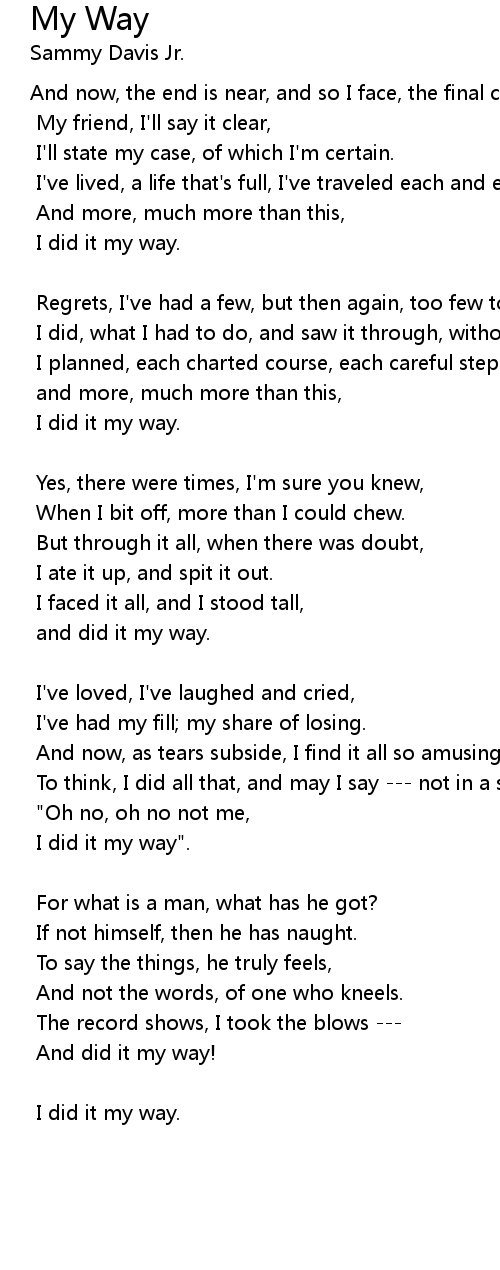 I've lived, a life that's full, I've traveled each and every highway. |