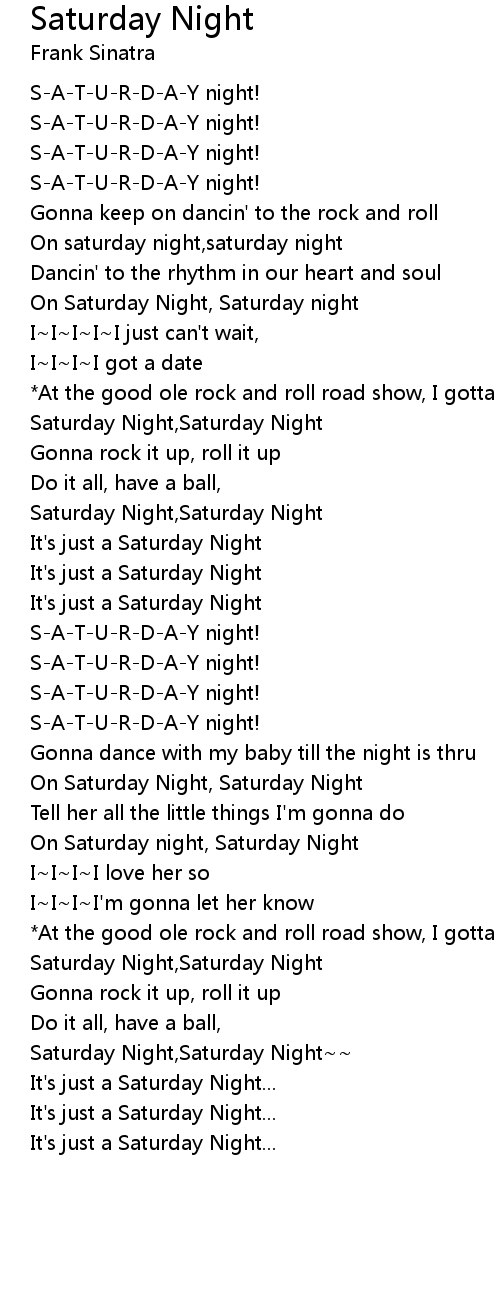 [01:43.88] Saturday Night,Saturday Night