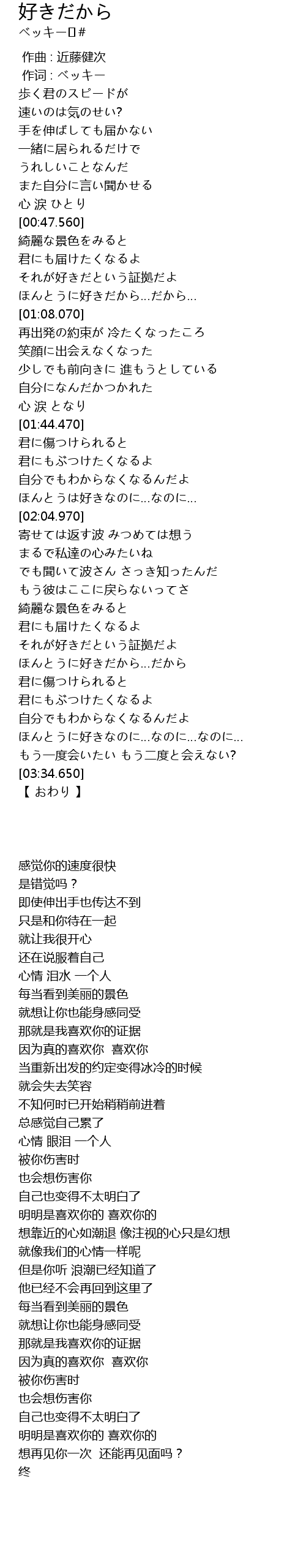 | [02:53.580] | ほんとうに好きだから…だから |
