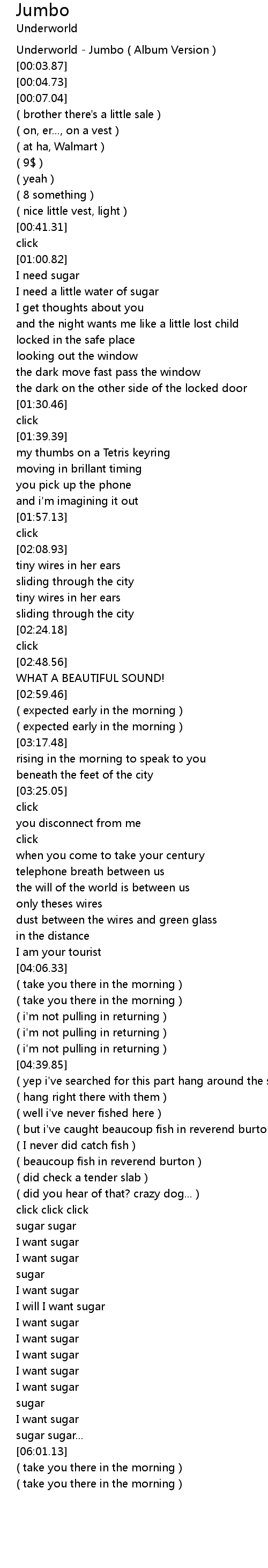 [00:00.00] Underworld - Jumbo ( Album Version )