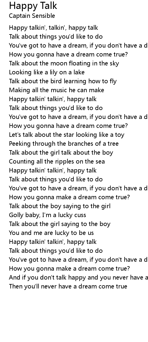Happy talkin', talkin', happy talk |