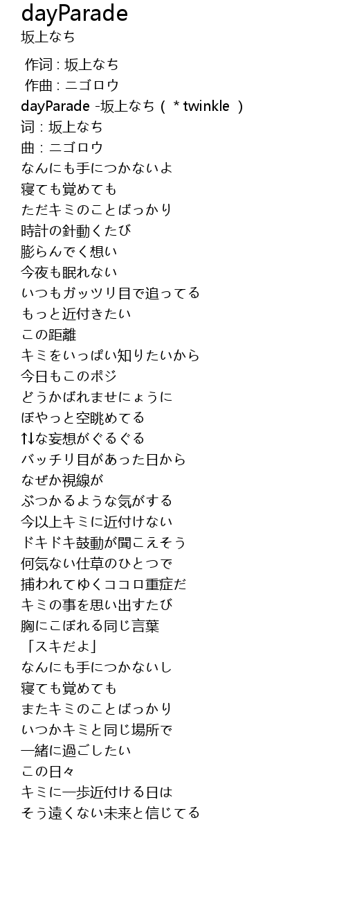 | [00:00.00] | dayParade -坂上なち(*twinkle ) |
