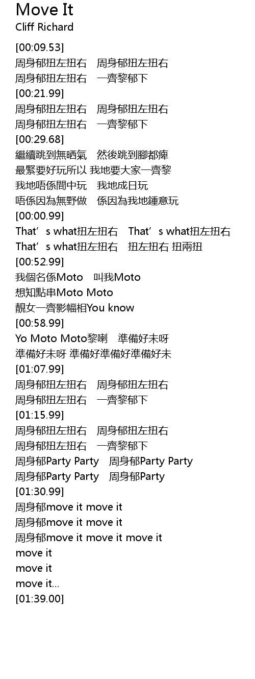 | [01:31.00] | 周身郁move it move it |