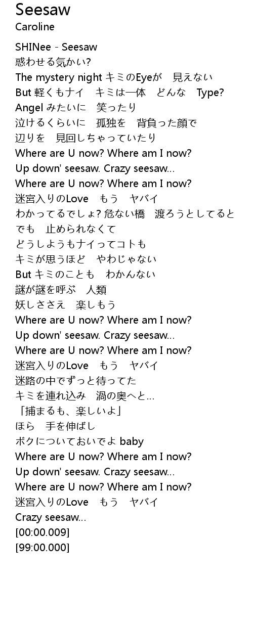 | [00:45.65] | Up down' seesaw. Crazy seesaw… |