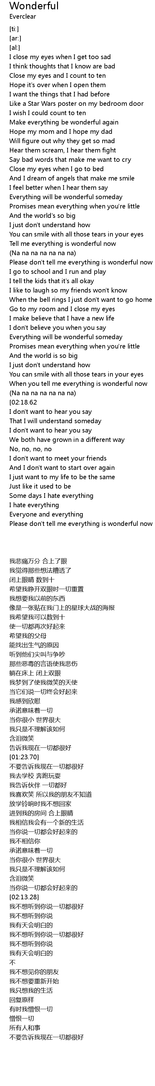 [02:34.00][02:18.62] I don't want to hear you tell me everything is wonderful now