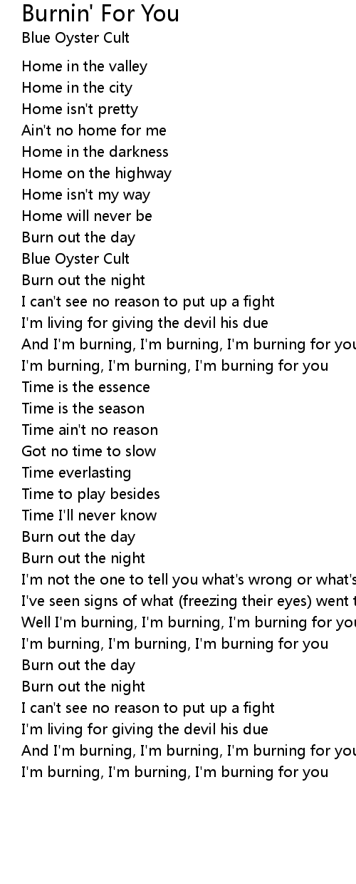 And I'm burning, I'm burning, I'm burning for you |