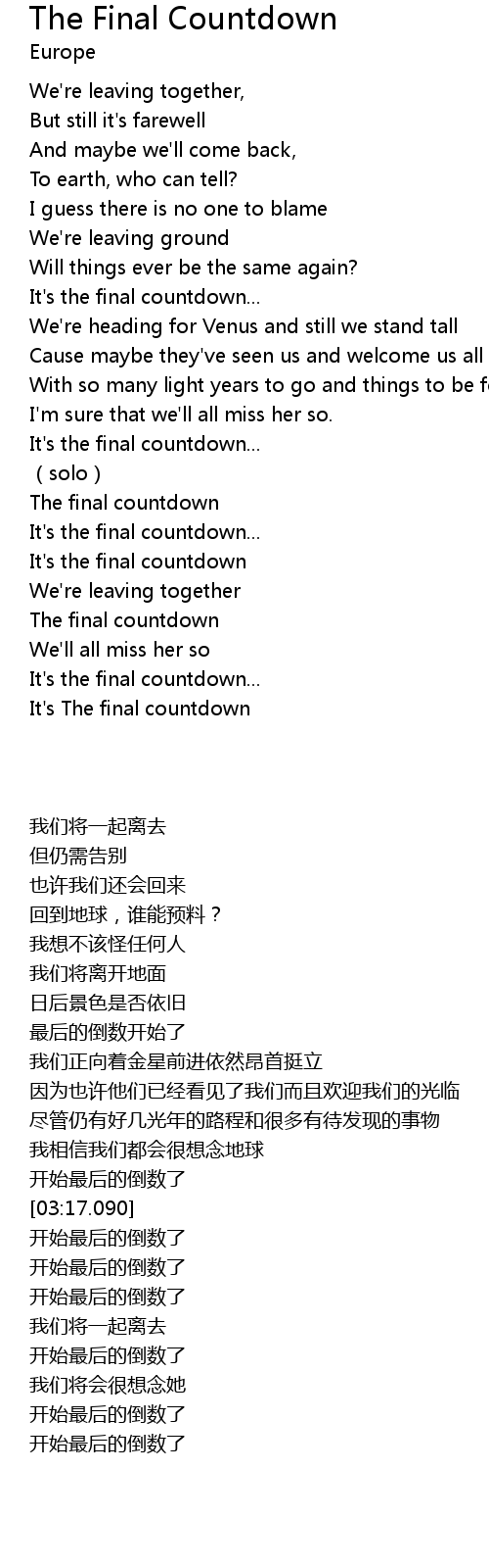 | [05:00.23] | It's The final countdown |