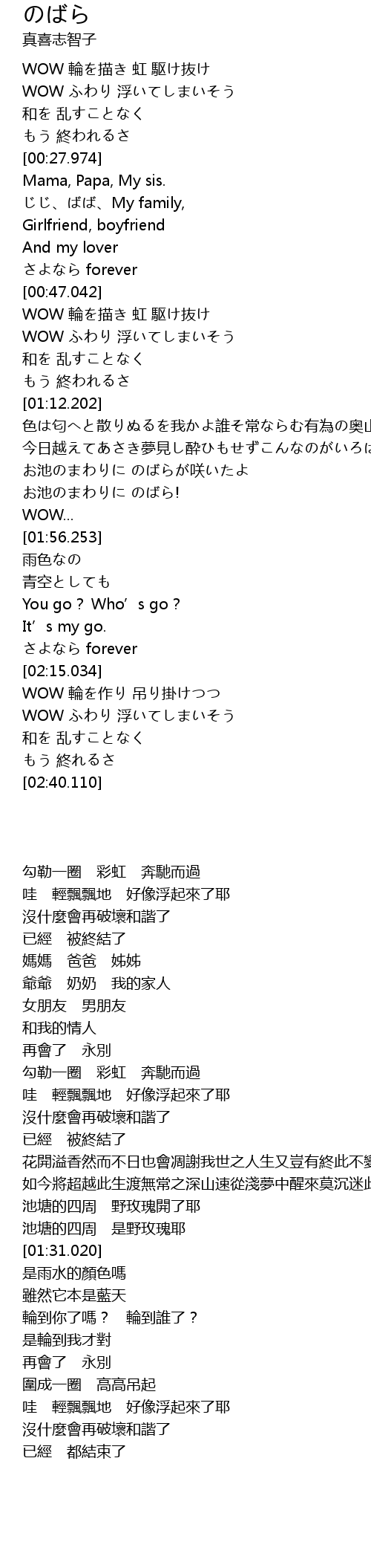 | [00:47.245] | WOW 輪を描き 虹 駆け抜け |