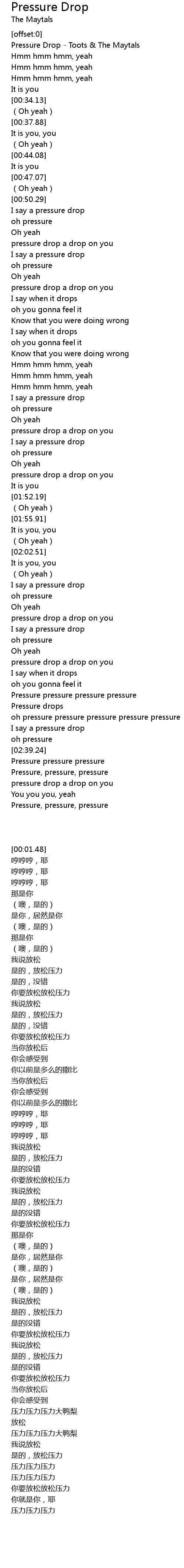 | [00:01.48] | Pressure Drop Toots The Maytals |