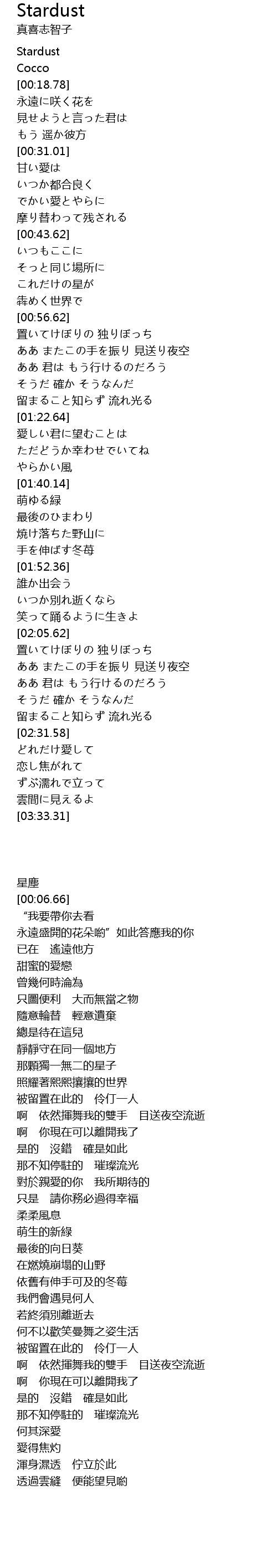 | [01:18.12] | 那不知停駐的 璀璨流光 |