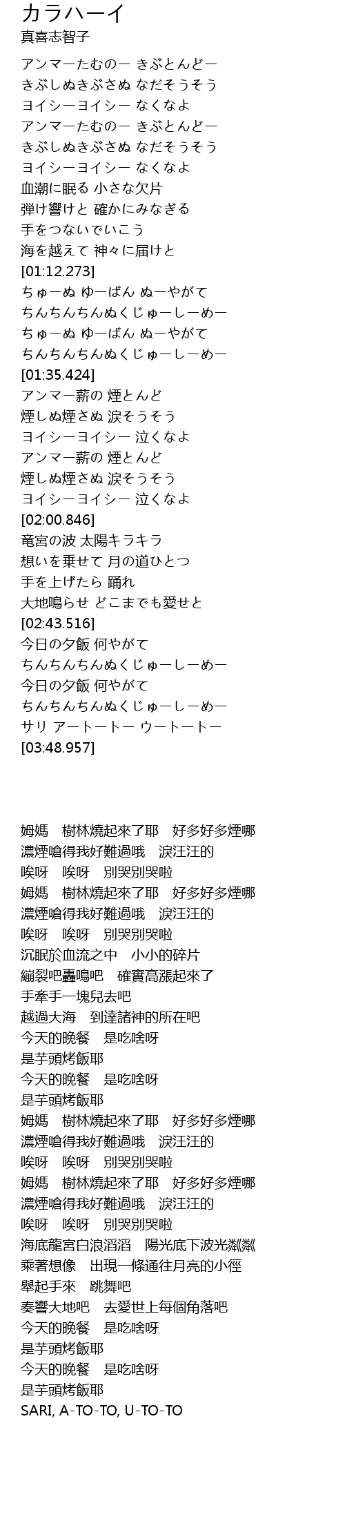 | [03:09.333] | サリ アートートー ウートートー |