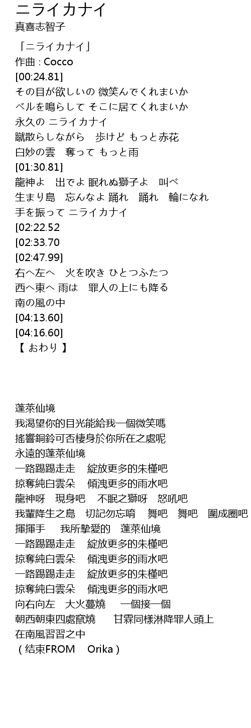 | [02:01.91] | 揮揮手 我所摯愛的 蓬萊仙境 |