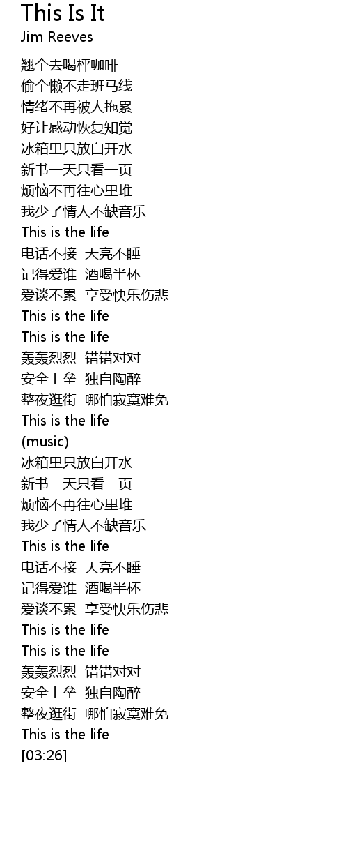 | [02:31] | 我少了情人不缺音乐 |