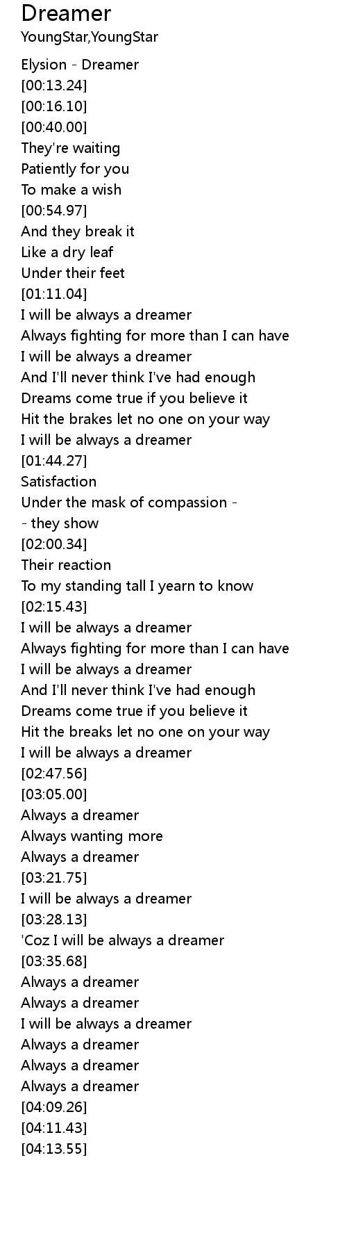 | [04:00.51] | Always a dreamer |