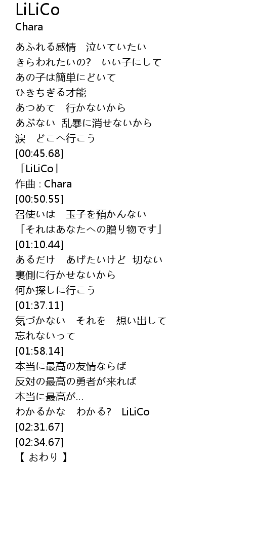 | [02:24.45] | わかるかな わかる? LiLiCo |