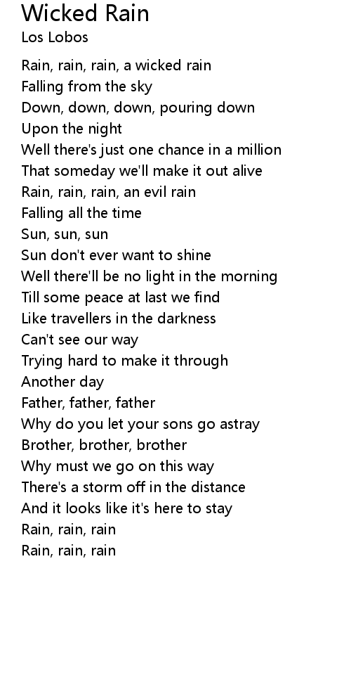 Rain, rain, rain, a wicked rain |
