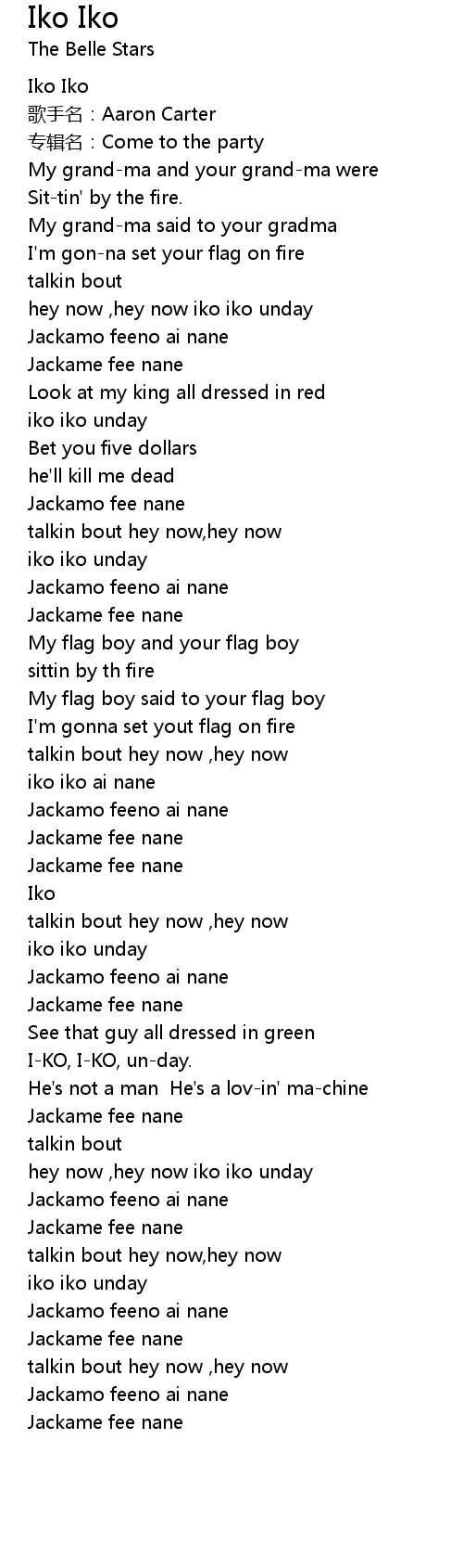 | [02:02.16] | hey now ,hey now iko iko unday |
