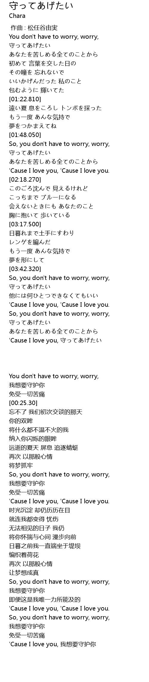 | [01:48.970] | So, you don' t have to worry, worry, |