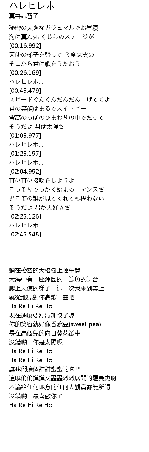 | [01:46.765] | ハレヒレホ... |