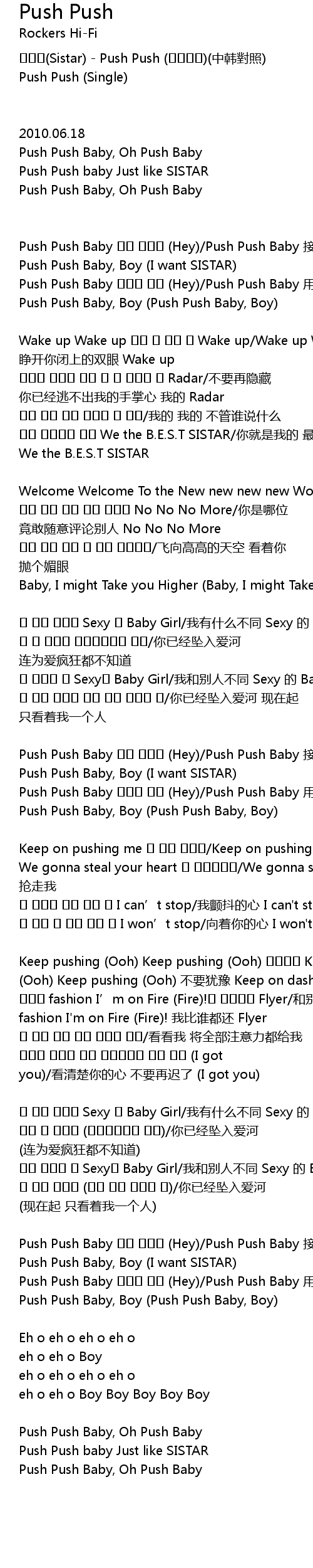 | 씨스타(Sistar) - Push Push (푸쉬푸쉬)(中韩對照) | |