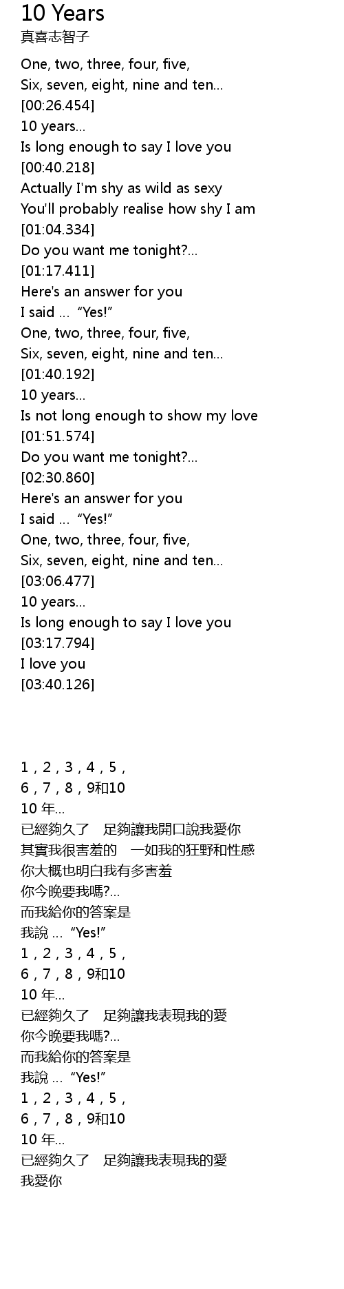 | [00:18.005] | Six, seven, eight, nine and ten... |