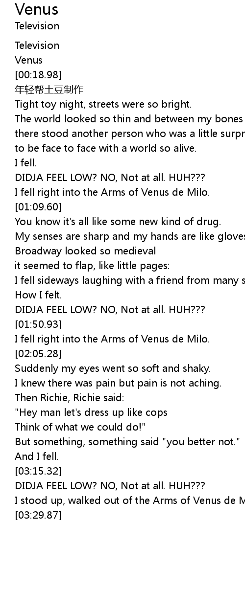 | [01:57.01] | I fell right into the Arms of Venus de Milo. |