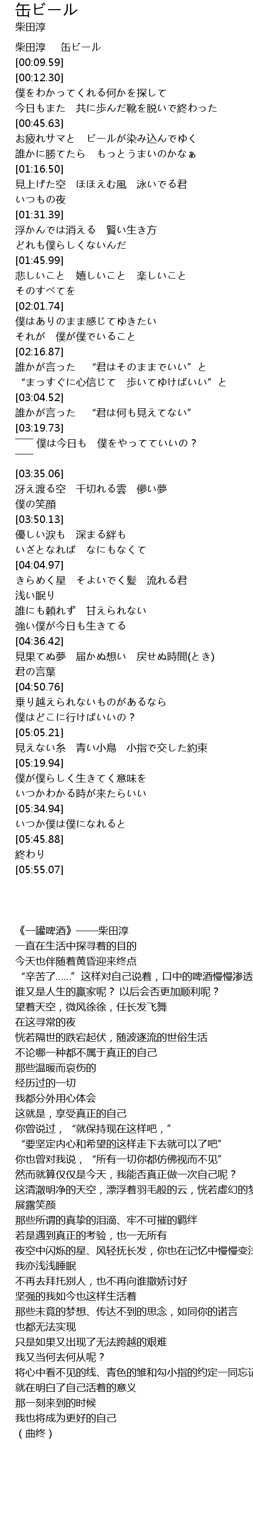 | [00:01.47] | 《一罐啤酒》——柴田淳 |