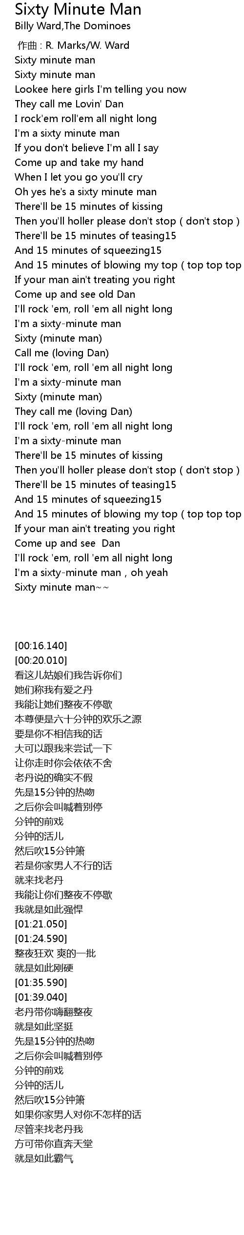 | [00:16.140] | Sixty minute man |