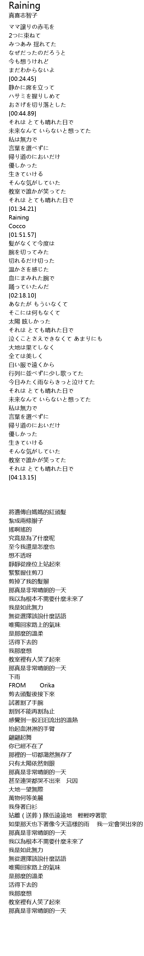 如果那天也下著像今天這樣的雨 我一定會哭出來的 |