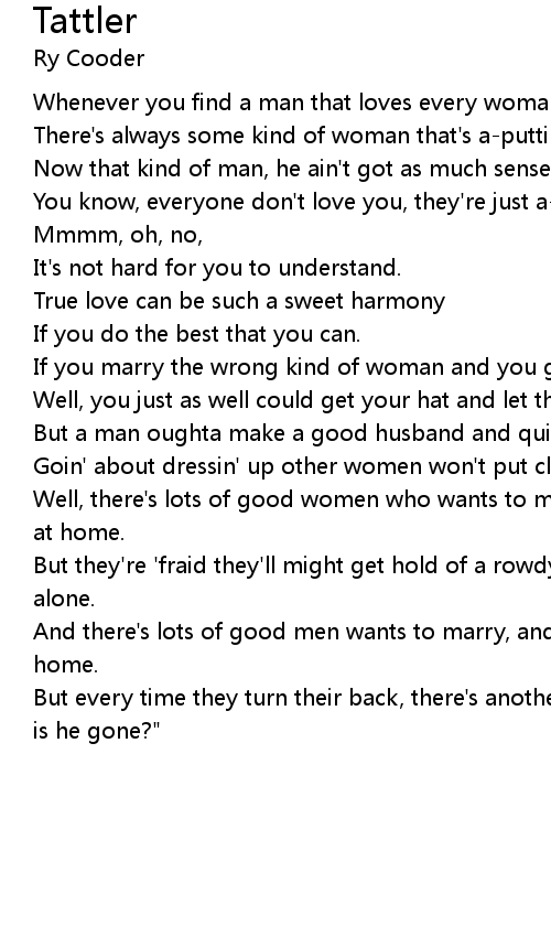 But every time they turn their back, there's another man there askin', "Darlin', is he gone?" |