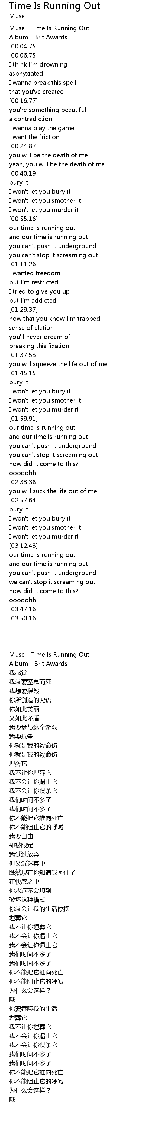 | [00:00.75] | Muse Time Is Running Out |