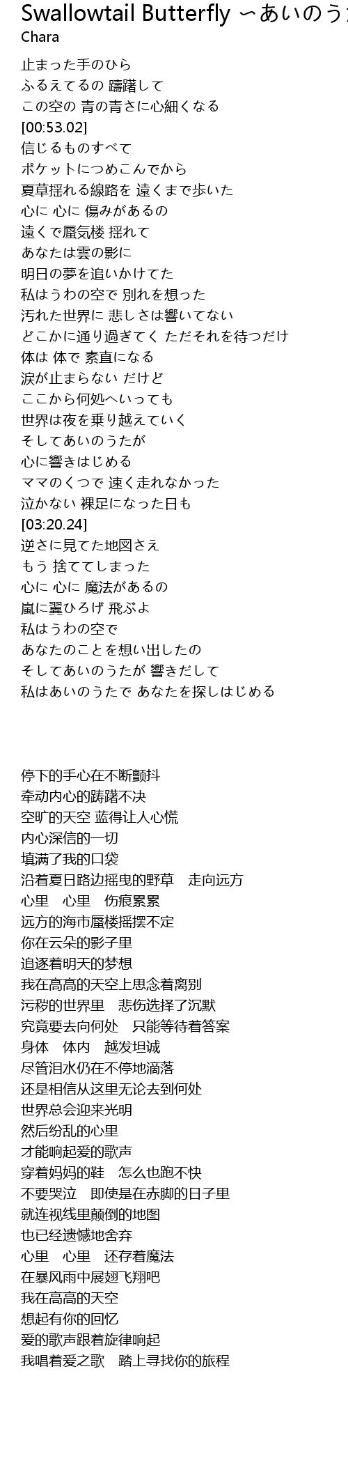 | [04:24.19] | 私はあいのうたで あなたを探しはじめる |