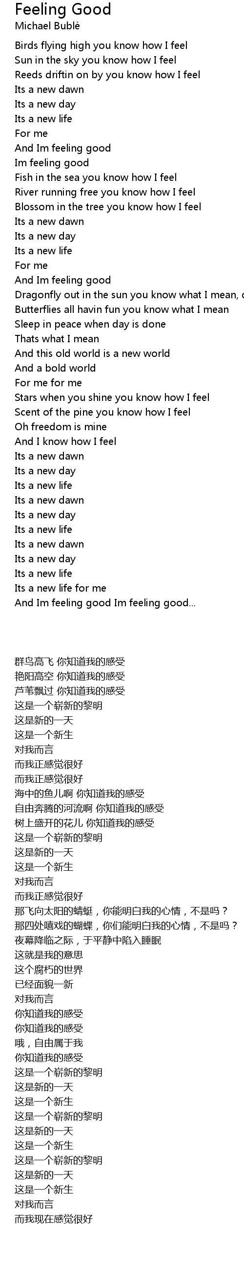 And Im feeling good Im feeling good... |