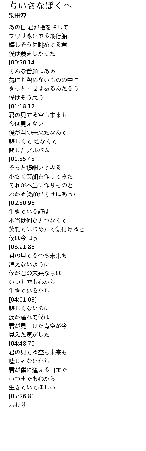| [01:05.21] | きっと幸せはあるんだるう |